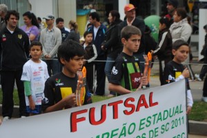 Garotos do núcleo do Anjos do Futsal de Forquilhinha participaram do Desfile Cívico realizado no município, no dia 07 de setembro, em comemoração ao Dia da Pátria.