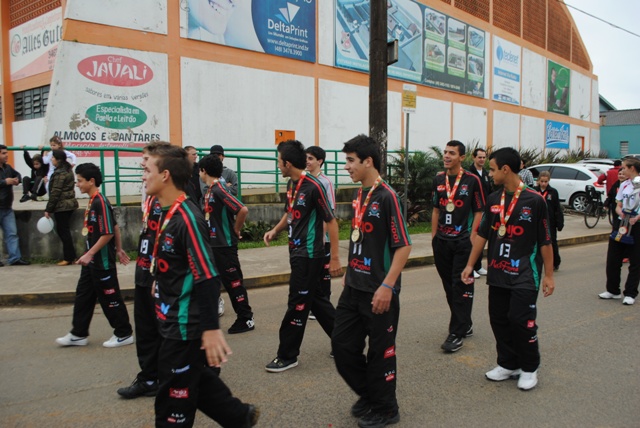 Os meninos do projeto desfilaram junto com os garotos da equipe Vice Campeã Estadual dos Joguinhos Abertos de Santa Catarina e Bicampeã Regional Da OLESC. Para o atleta Cristian Bauer Cardoso o desfile foi muito legal. “Porque além de festejar a pátria, ainda homenageamos os nossos atletas campeões”, comenta.
