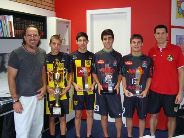 Alguns atletas da equipe Sub-15 Forquilhinha/Anjos do Futsal visitaram a Anjo para apresentar alguns troféus de conquistas em 2011, juntamente com o técnico Jean Reis. Foram recebidos pelo diretor presidente da empresa, Beto Colombo.