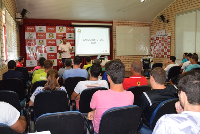 O Anjos do Futsal reuniu, na tarde de ontem (04/03), os professores dos núcleos dos 17 municípios parceiros, alguns diretores e secretários de esportes para iniciar as atividades deste ano. Mais de 30 pessoas compareceram ao encontro que contou com a abertura do Diretor Presidente da Anjo Tintas Filipe Colombo, uma palestra do conferencista Jairo Martins, divulgação das atividades do ano, apresentação do uniforme e entrega das bolas e coletes para os treinos.