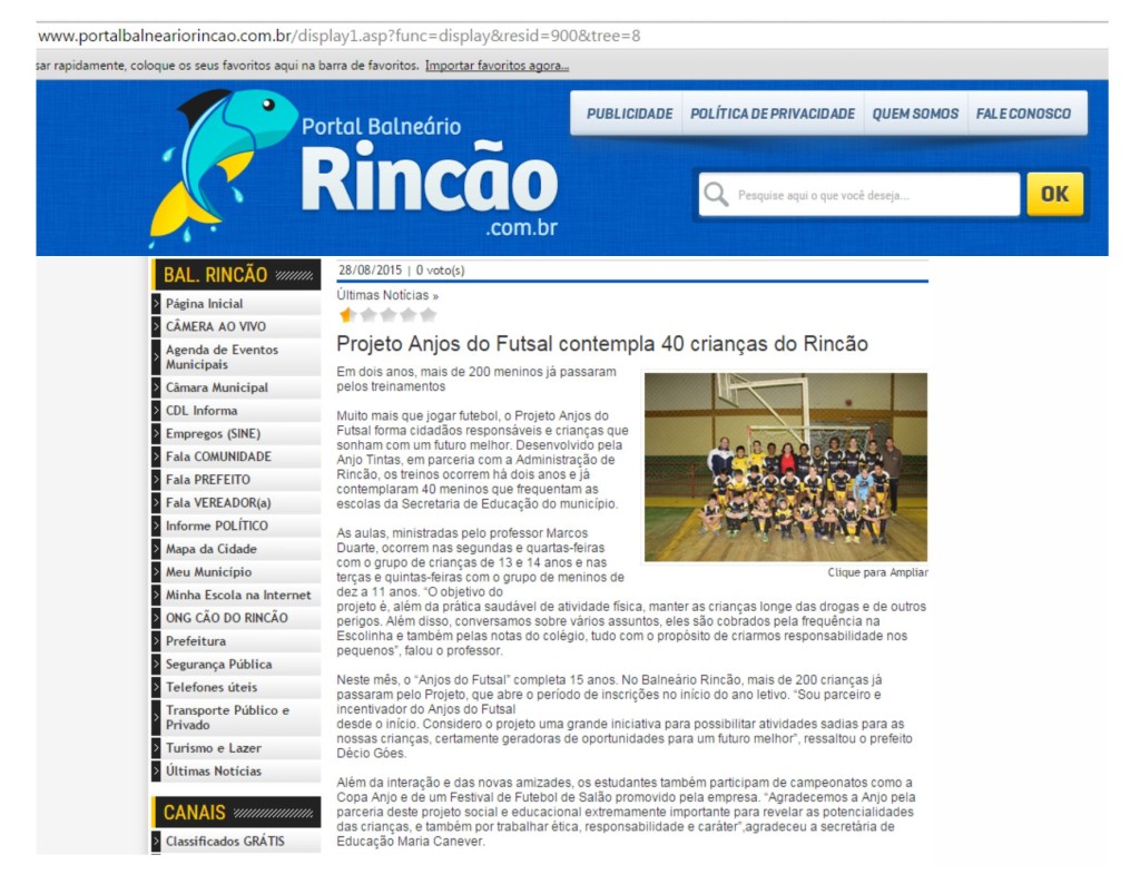 Anjos do Futsal na Imprensa – 25/08/2015 a 31/08/2015