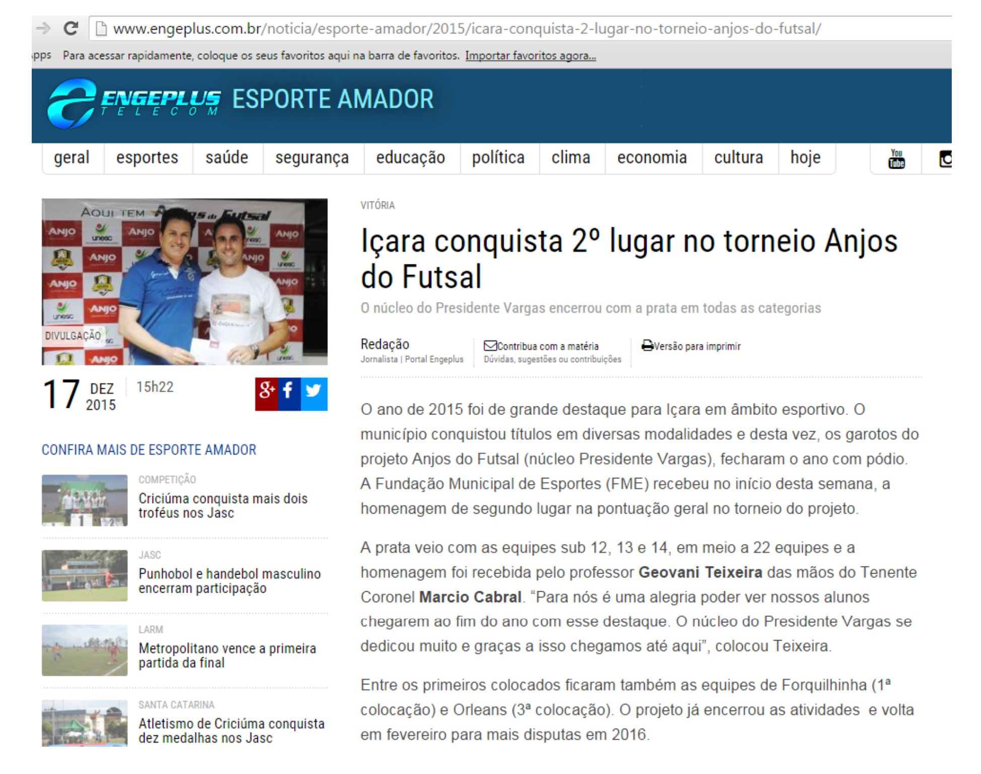 Anjos do Futsal na Imprensa – 11/12/2015 a 18/12/2015